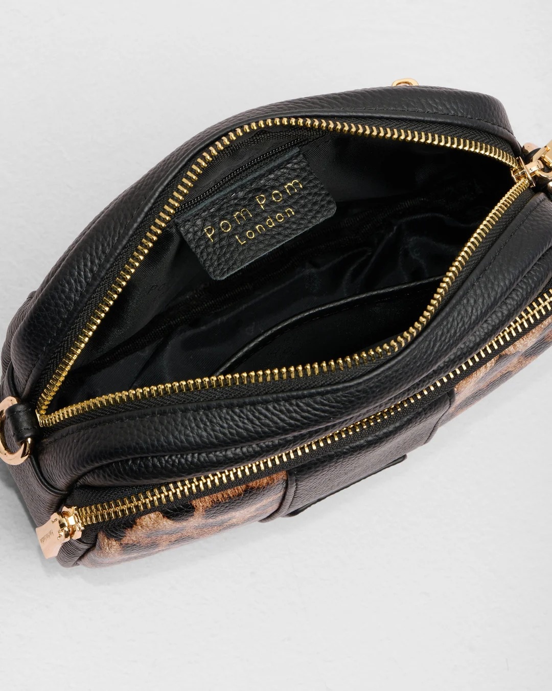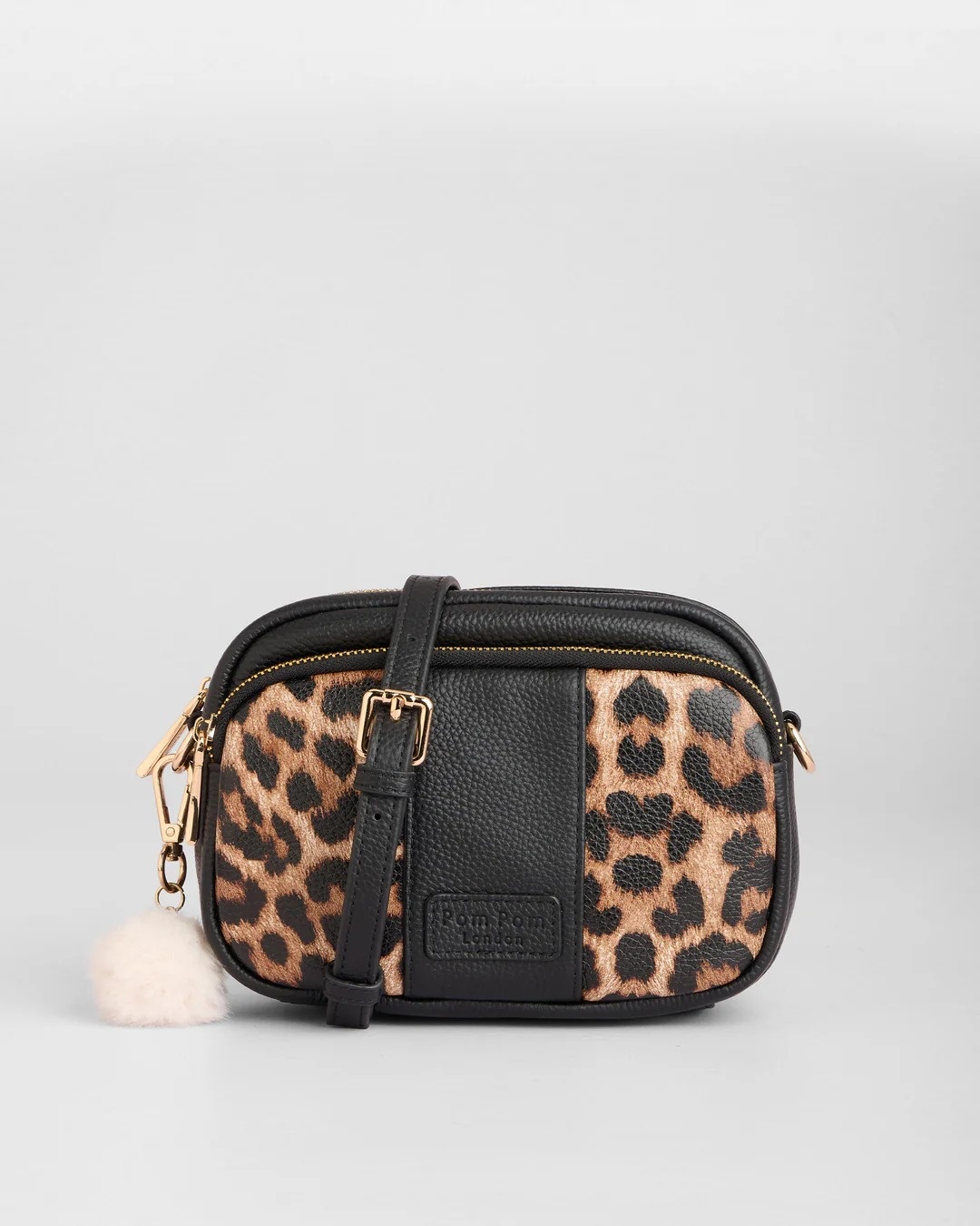 The Original Bag in Leopard Print Black is a warm, soft take on statement style. Rich black leather paired with leopard print details creates a standout look that feels modern yet timeless, and it has three external zip compartments for added convenience. Its detachable strap allows you to mix it up by using other Pom Pom London straps, and a double reinforced leather base provides durability. Designed in the UK.