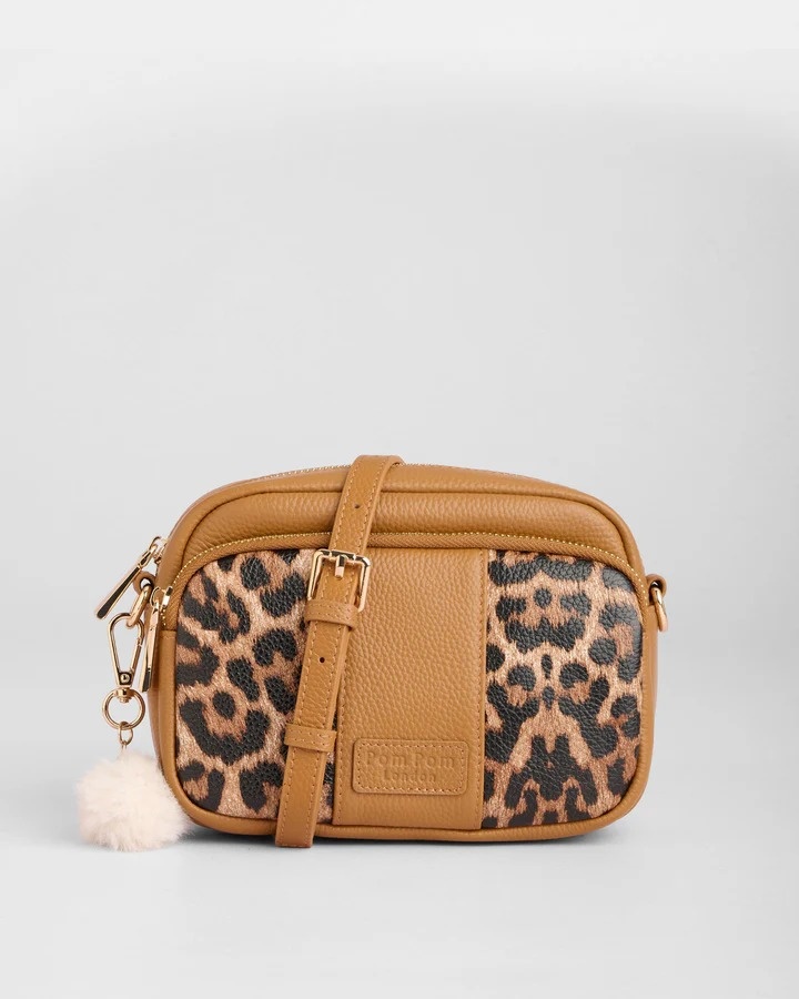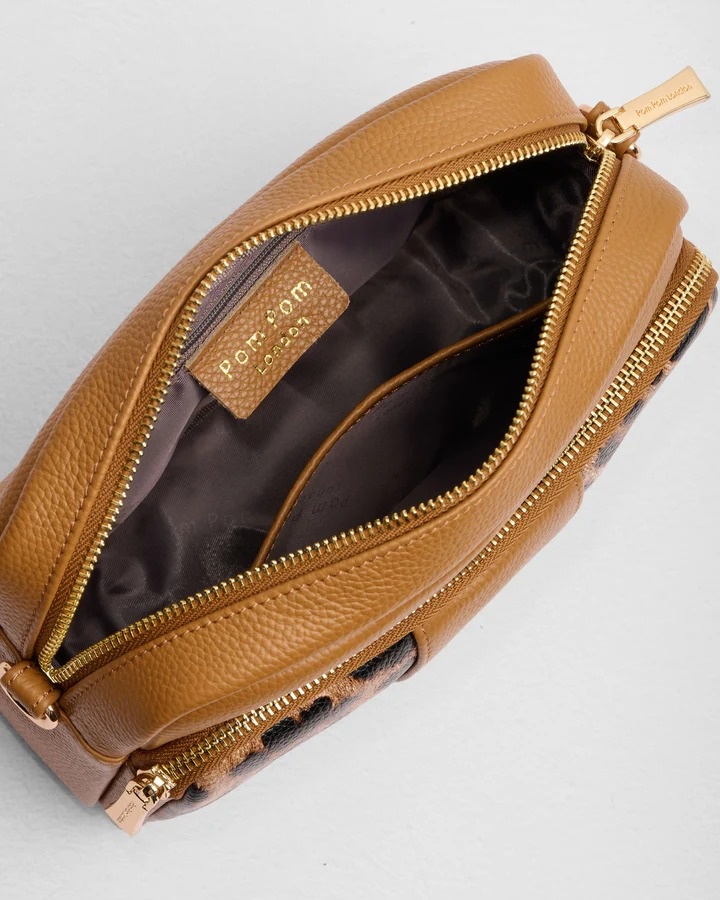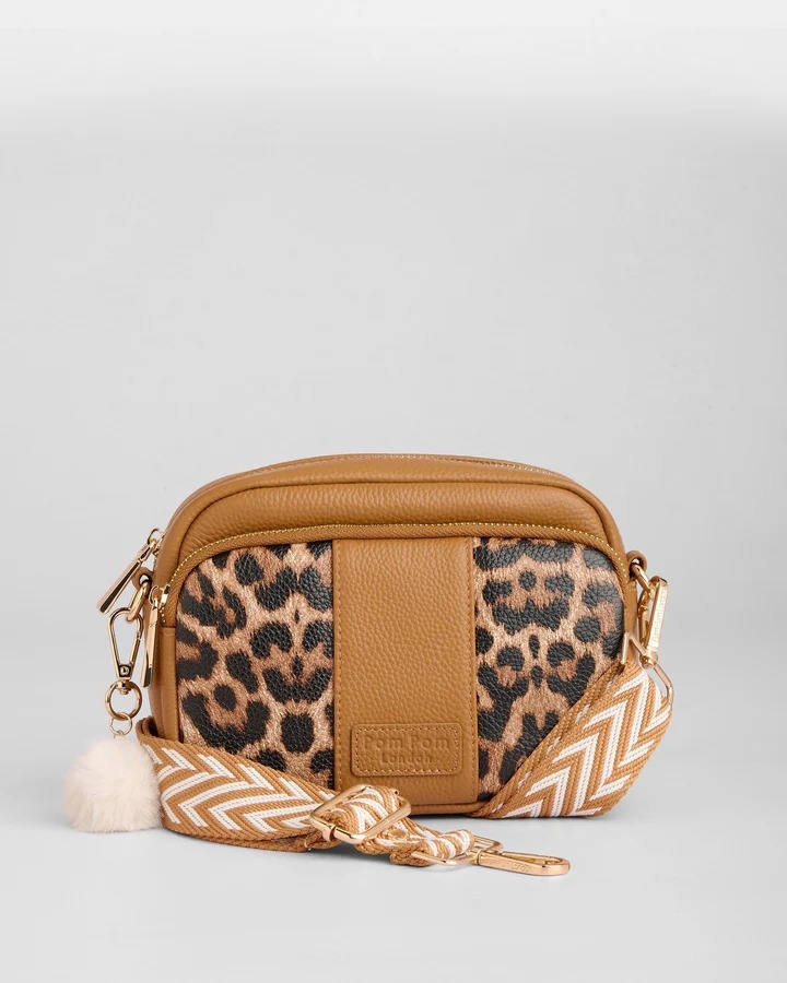 The Original Bag in Leopard Print Maple is a warm, soft take on statement style. Rich maple leather paired with leopard print details creates a standout look that feels modern yet timeless, and it has three external zip compartments for added convenience. Its detachable strap allows you to mix it up by using other Pom Pom London straps, and a double reinforced leather base provides durability. Designed in the UK.