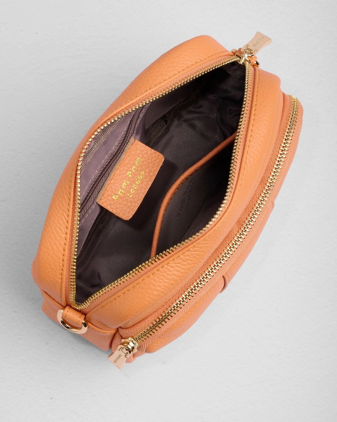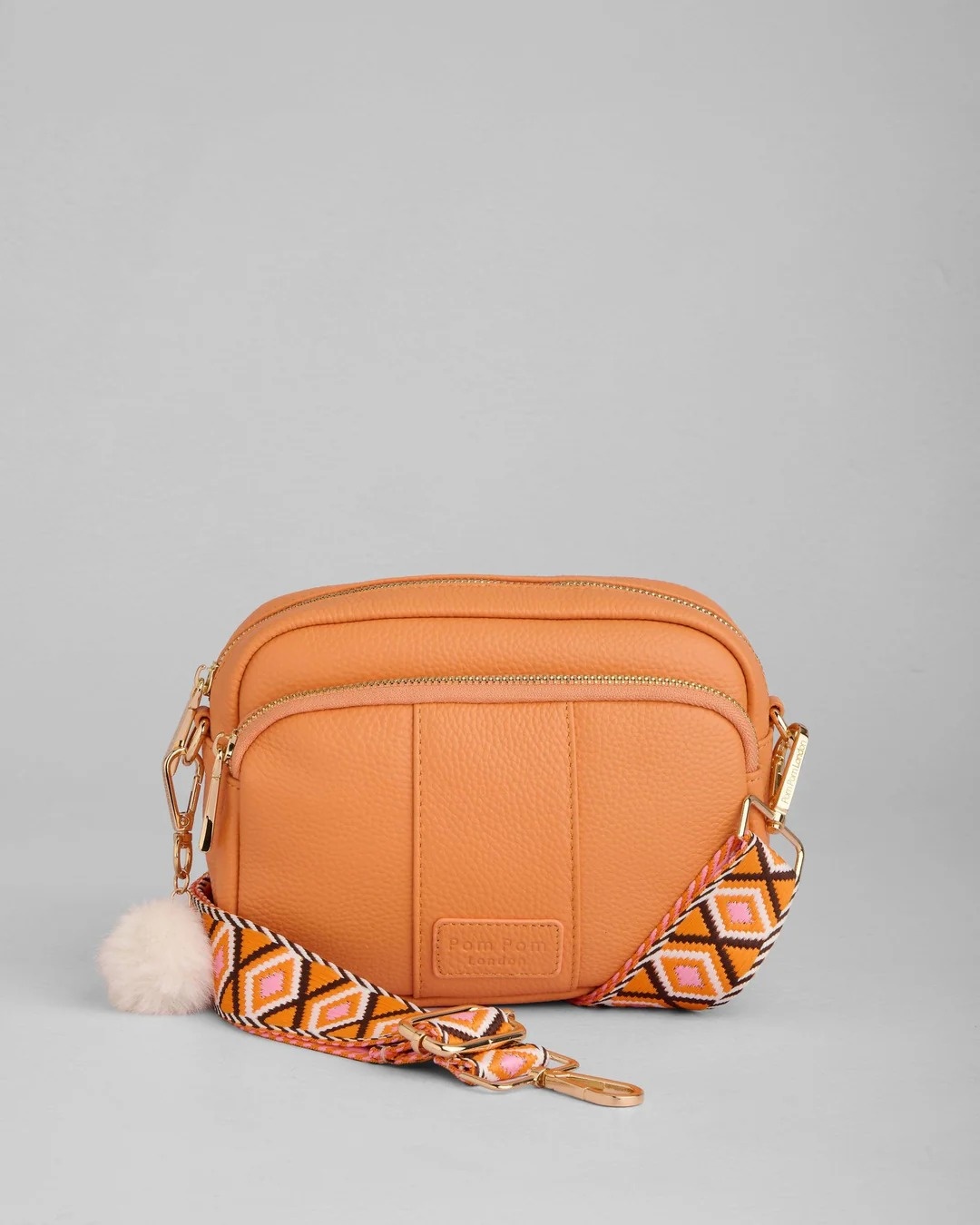 Nothing says high summer quite like the Original Bag in Mango Tango. With its three signature external zip compartments keeping everything in place, the Original is both practical and playful. Its detachable strap allows you to mix it up by using other Pom Pom London straps, and a double reinforced leather base provides durability. Designed in the UK.