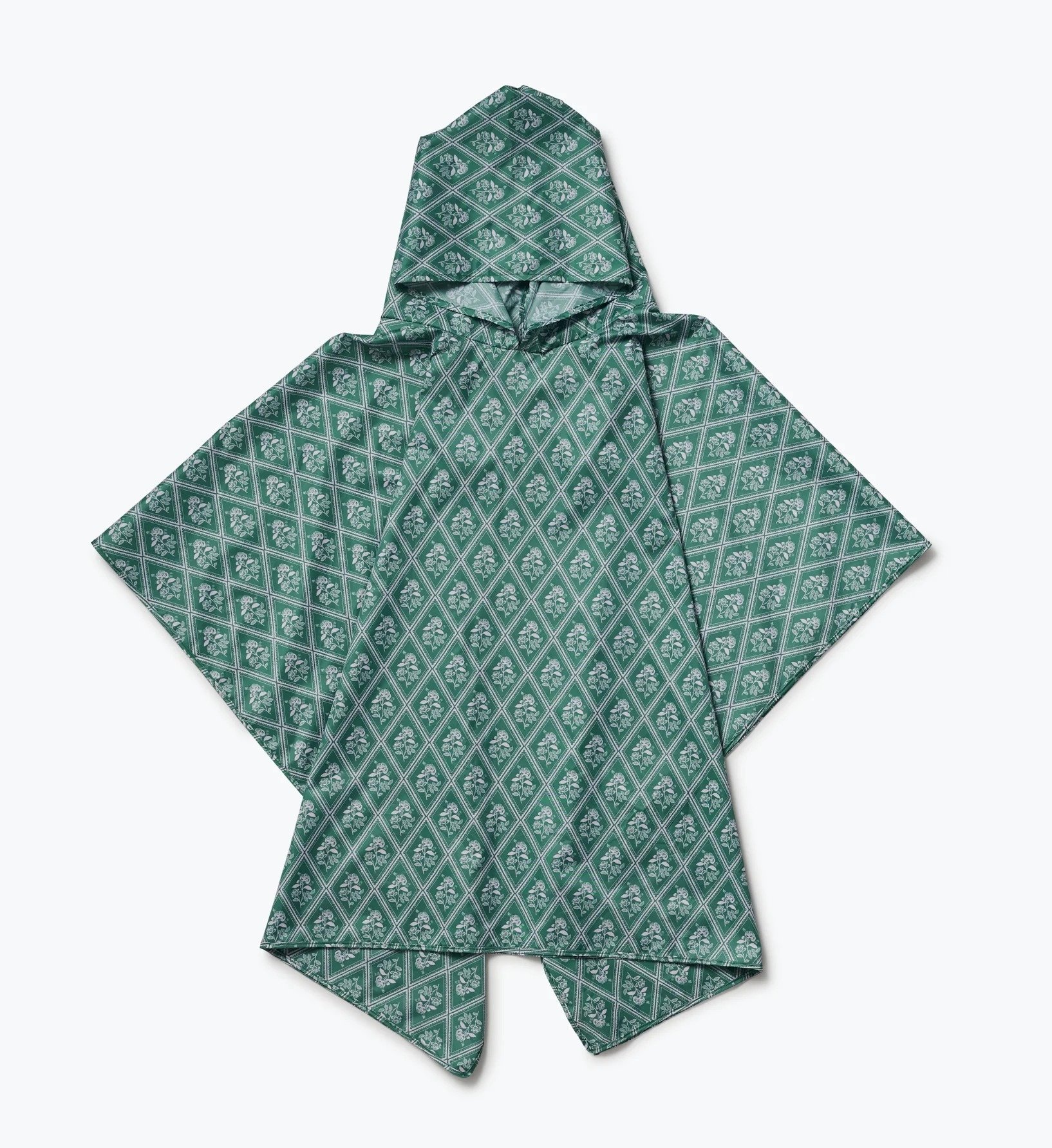 Getting caught in the rain has never looked better with this beautiful Rose Studya rain poncho. Made from recycled material, it easily packs into an attached pouch for storage. One size fits most. Wipe clean. Do not bleach, iron, or tumble dry.