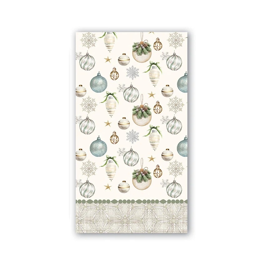 A cascade of diverse Christmas baubles adorns these elegant napkins. These soft, triple-ply paper hostess napkins add an elegant and functional touch to any space or event.