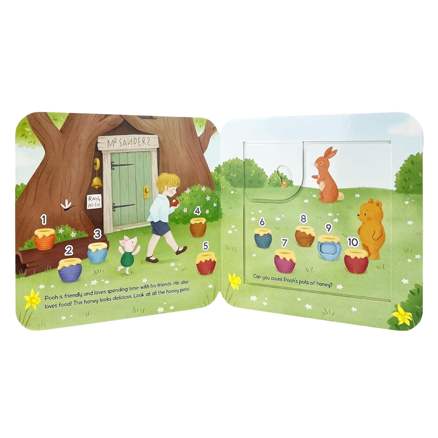 Meet Winnie-the-Pooh and his friends and all the places they love in the Hundred Acre Wood. Readers will meet Christopher Robin's friends while discovering early learning themes like counting, colors, opposites, shapes, and first words. This chunky board book has interactive flaps and peek holes to keep story time interactive. Great gift for babies and toddlers just discovering Winnie-the-Pooh, Christopher Robin, and their world.