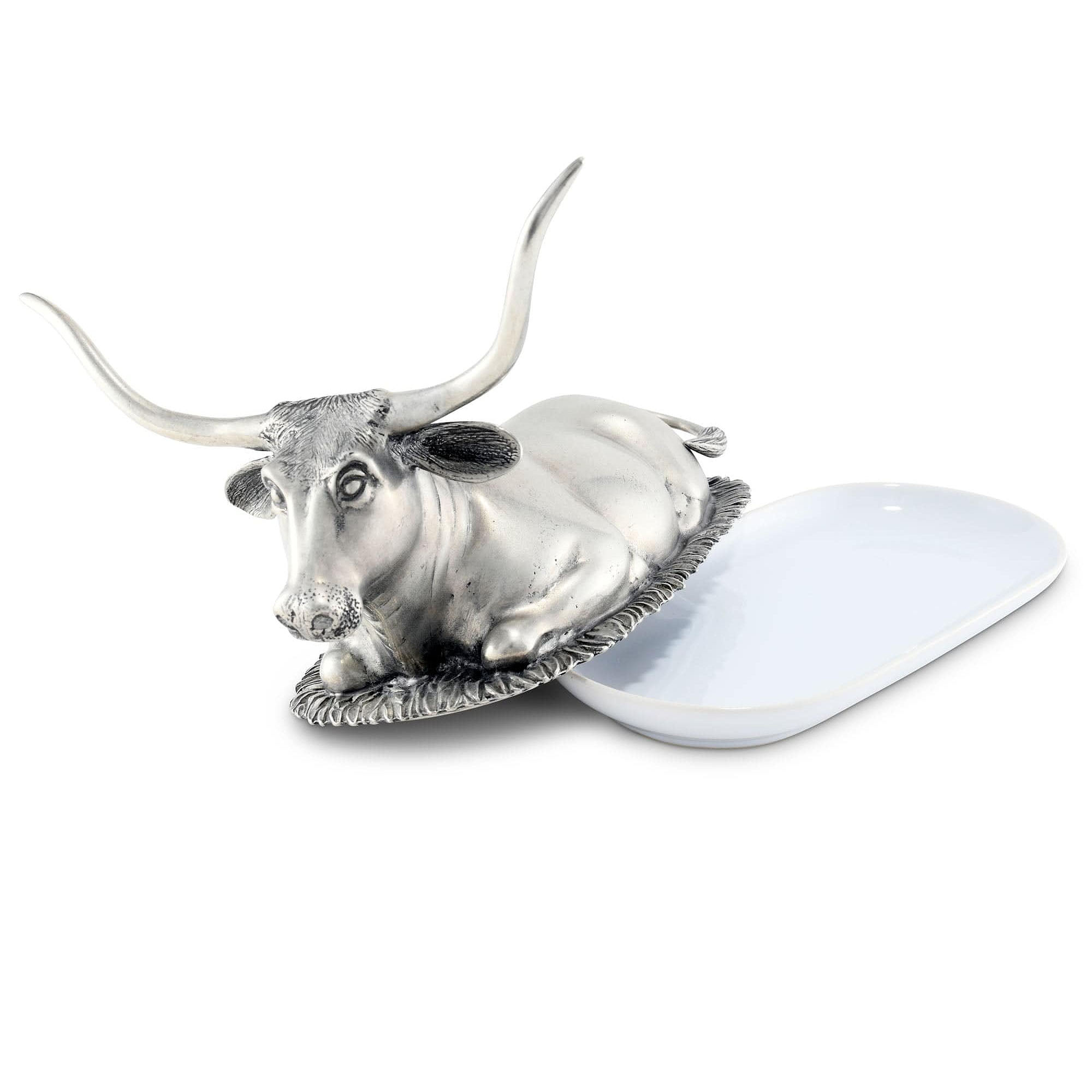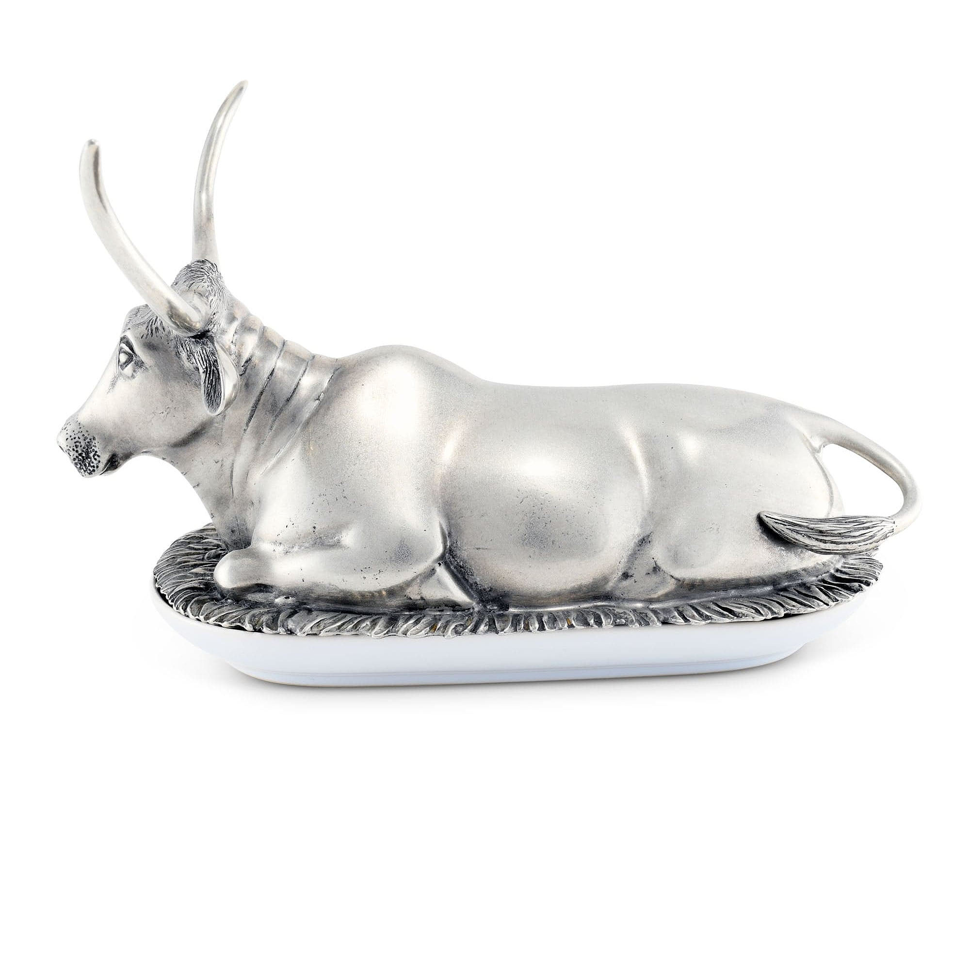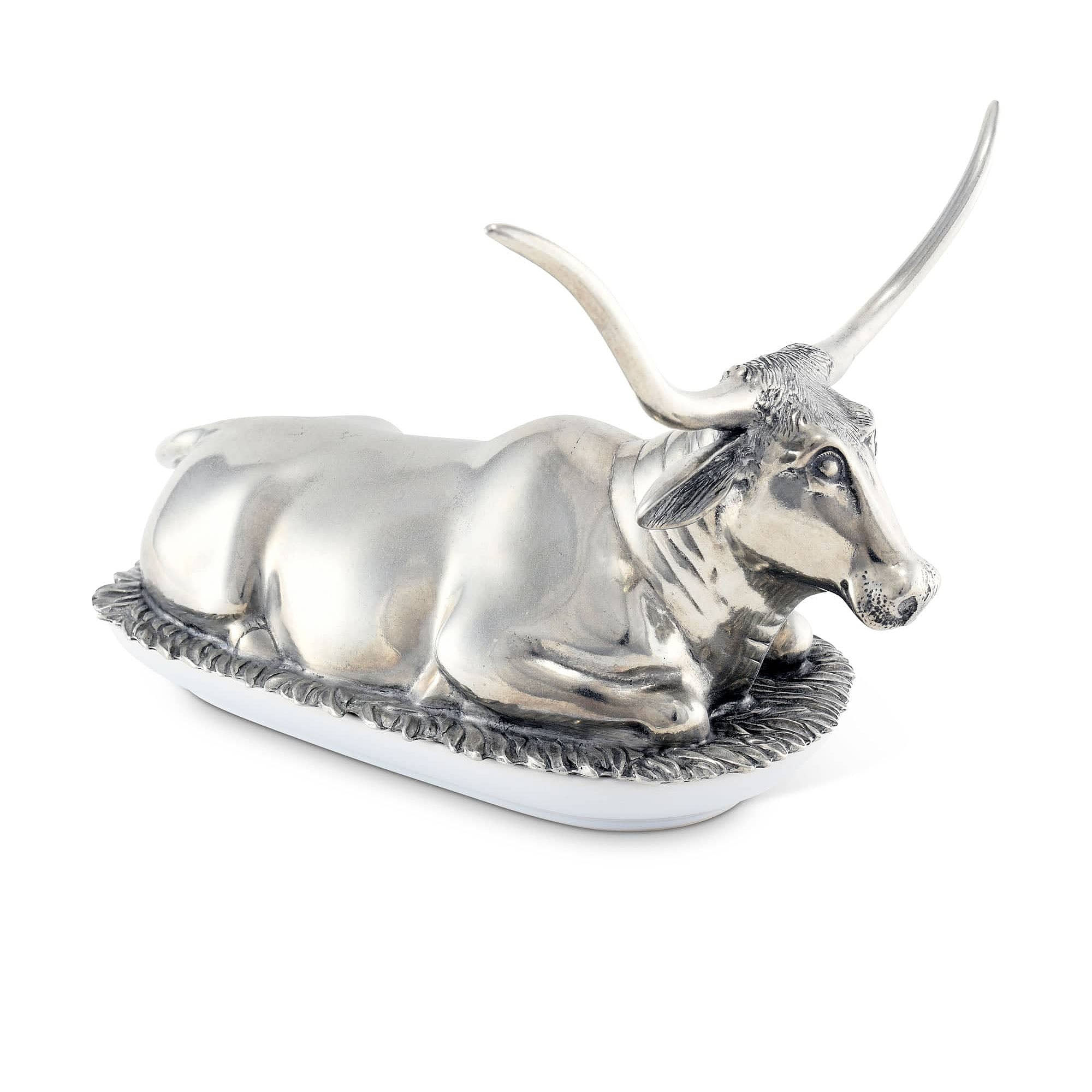 Majestically designed with a 3D Steer figure pewter lid, this butter dish is generously sized to keep butter fresh in style.