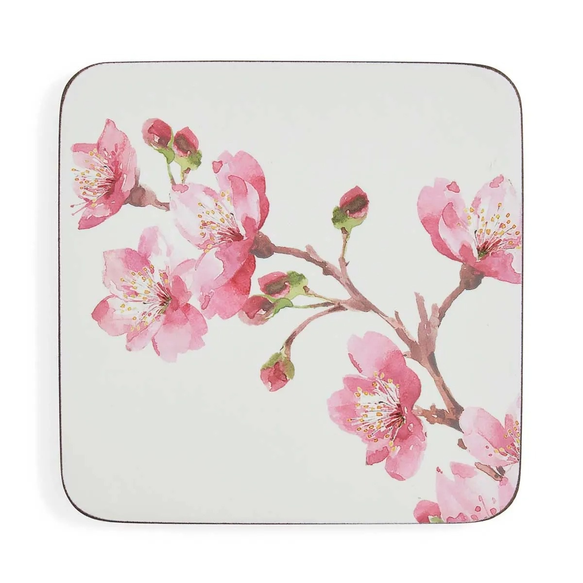 Let nature do the talking with this stylish set of Pink Blossom coasters. Perfect for lending a touch of springtime elegance to any room, each piece in this gorgeous set of six is simply decorated with baby pink cherry blossoms on a plain white background. These quality coasters are a 5mm board with a unique and exclusive art print, sealed with a high-quality coating that is both stain and heat-resistant and finished with a hard-wearing cork back to protect furniture. Clean with a damp sponge and dry with a soft cloth. Do not immerse in water.