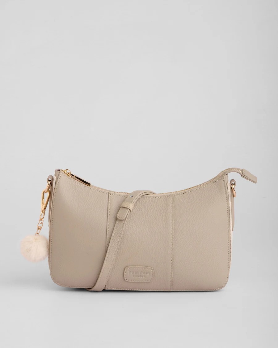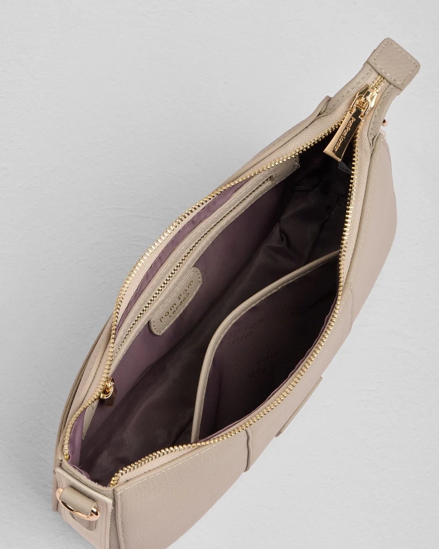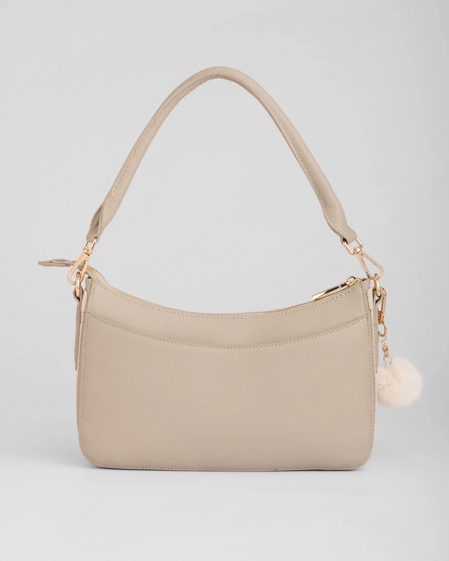 The Edgware Bag in Stone is neutral with a sleek, minimalist design. It features a rolled leather handle for on-the-shoulder wear, or can be fashioned crossbody with ease. This style is an effortless addition to any wardrobe and versatile to take from day to night.