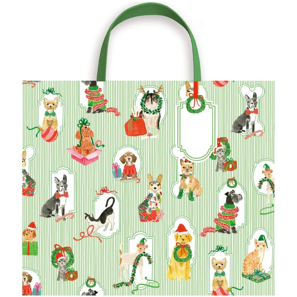 Adorned with bright colors and festive cats and dogs, this Caspari gift bag will elevate your present presentation through exceptional design and quality. It is printed on durable, heavy-duty paper and features strong handles for carrying.