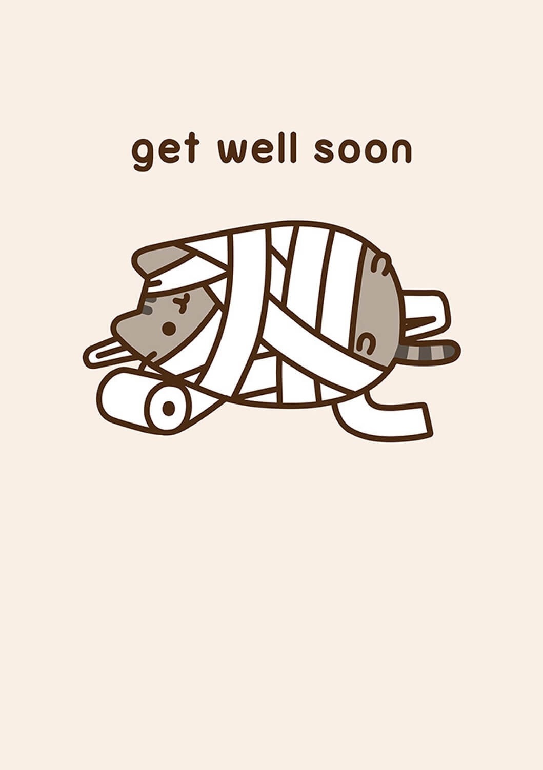 The lovable cat Pusheen is here hoping you feel better as soon as possible. The card is blank inside for a personal message.