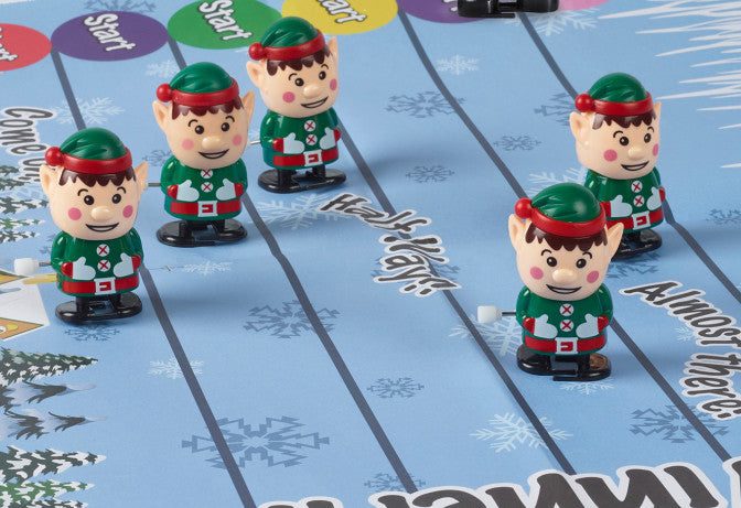 These Racing Elf crackers contain a different wind-up elf in each cracker, plus a race track. Wind them up, line them up, and see who wins! Each 13" Christmas cracker contains a snap, amusing joke, party hat, and wind-up elf. 6 crackers per box. Adult supervision is required and not suitable for children under 36 months due to small parts.