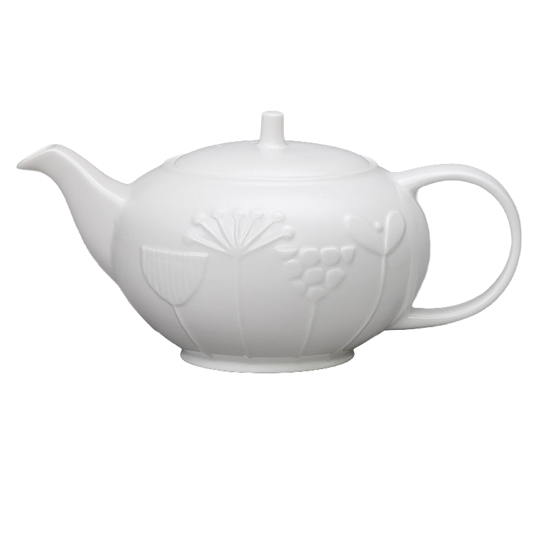 The Plum Teapot is part of Repeat Repeat's popular white bone china range with raised 3D patterns. It holds a generous 1.5 pints/710mL and pours really well. It features an understated floral pattern — a nod to mid-century design. And it makes a simple cup of tea feel that little bit more special. Microwave and dishwasher safe, but hand washing is recommended. Made in Stoke-on-Trent, England.