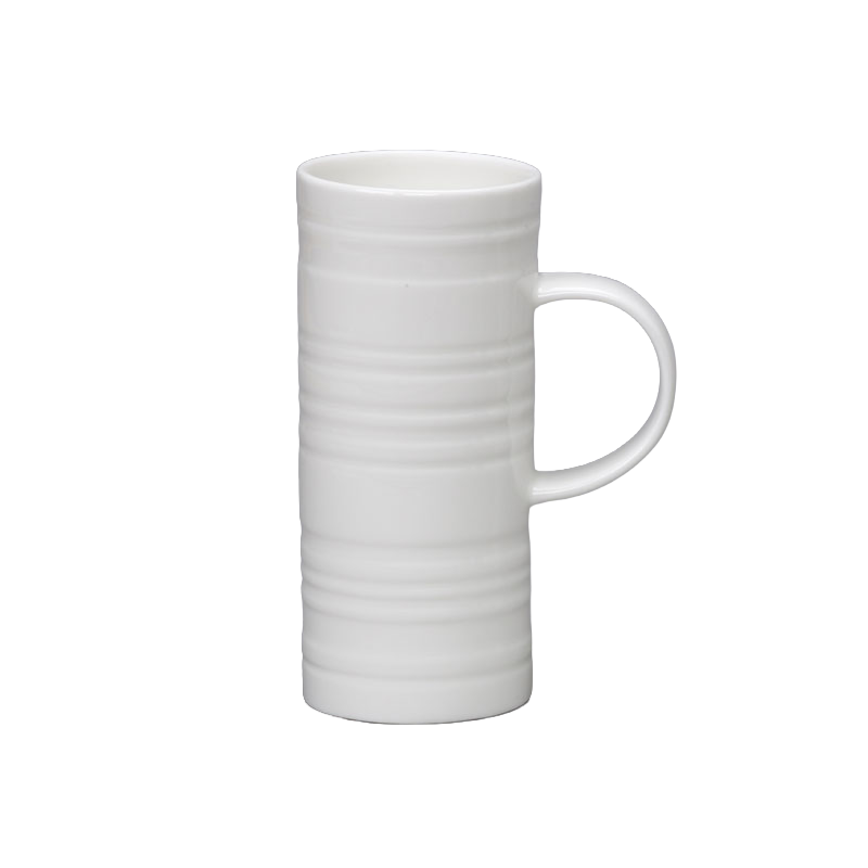The Skinny Ribbed mug is part of Repeat Repeat's popular white bone china range with raised 3D patterns. This design features classic horizontal grooves. It's unusually tall, slim, and very pleasing to hold. It makes a simple cup of tea or coffee feel that little bit more special. Microwave and dishwasher safe, but hand washing is recommended. Made in Stoke-on-Trent, England.