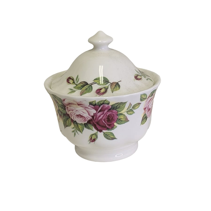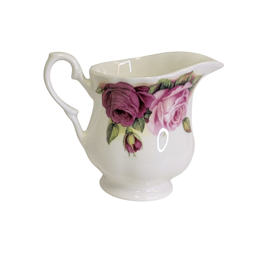 Complete your teatime tablescape with this creamer and lidded sugar bowl, produced by artisan pottery company Roy Kirkham. Steeped in the rich heritage of English ceramics, it is made of durable and elegant fine bone china and decorated with an exclusive rose design. Microwave and dishwasher safe. Hand wash recommended. Made in Stoke-on-Trent, England.