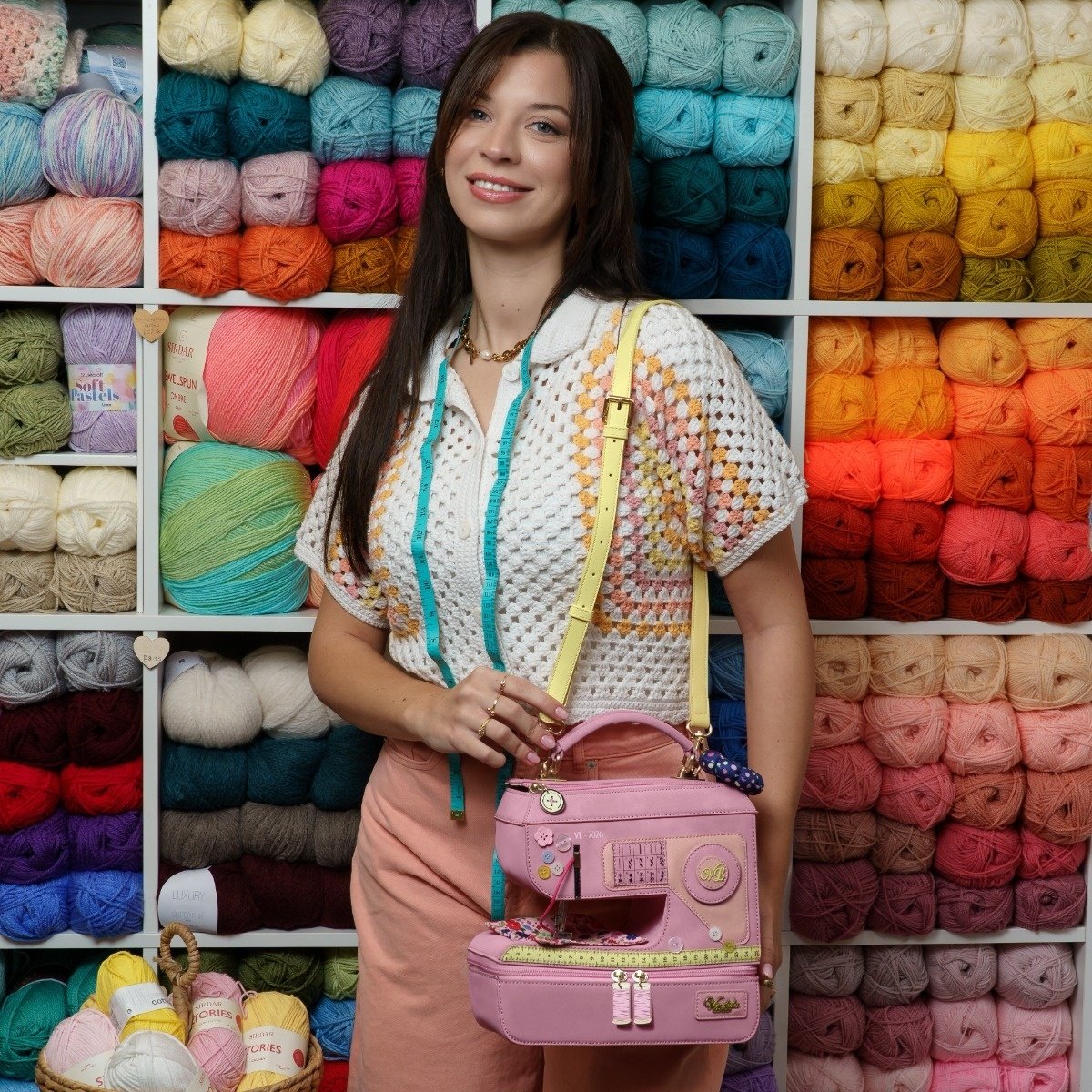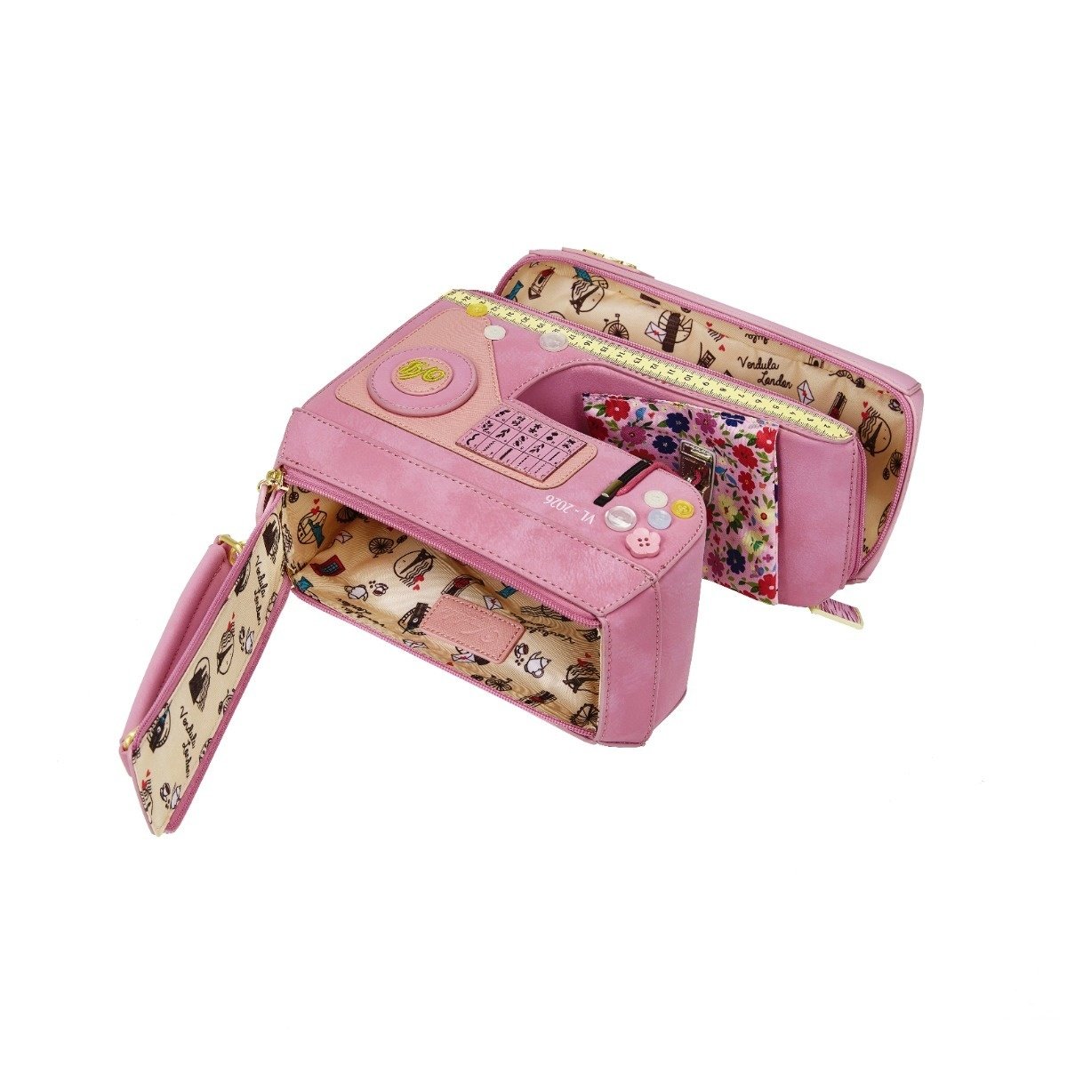 Take a trip down memory lane with the Vendula Sewing Shop Raspberry Edition Sewing Machine Bag. The spacious interior and multiple pockets keep your essentials secure with a zipper closure. With a detachable handle and strap, you can wear it as a handbag, shoulder, or crossbody bag. Base studs keep it stable and clean wherever you place it.