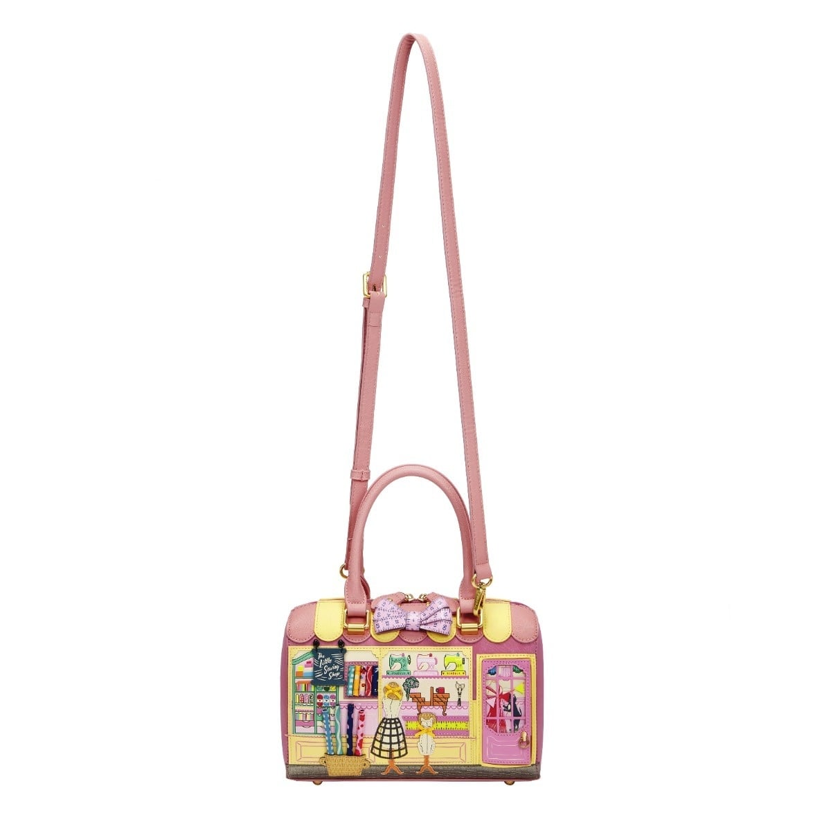 A little slice of haberdashery magic: the Vendula Sewing Shop Raspberry Edition Speedy Bowler is sew delightful from every angle. It has plenty of space for your essentials and multiple pockets to keep everything organized. Carry it by the handles or wear it crossbody or over the shoulder with the adjustable strap.