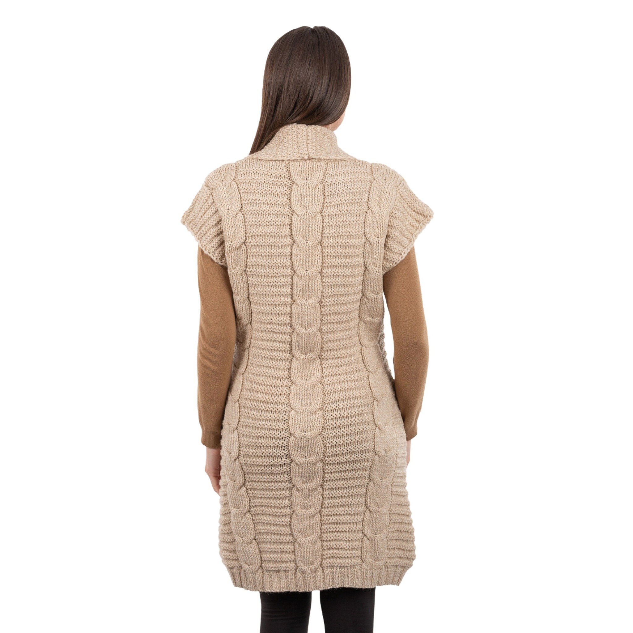 The Sleeveless Shawl Collar Cardigan in Parsnip will add a touch of cultural identity to your wardrobe. This cardigan, knit from 100% virgin wool, is incredibly soft to the touch, cozy, and durable, making it the perfect companion for many years to come. It is also breathable and has great heat-insulating properties, so you can enjoy it all year round. Aside from that, SAOL's innovative anti-shrink technology makes this cardigan machine washable, allowing you to enjoy it for a long time.
