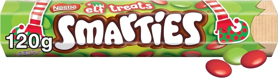 Experience the ultimate Christmas treat with Nestle Giant Smarties Tube Elf Treats from the UK. This delightful stocking stuffer features a vibrant mix of red and green smarties, perfect for adding a touch of holiday cheer to any festive occasion.