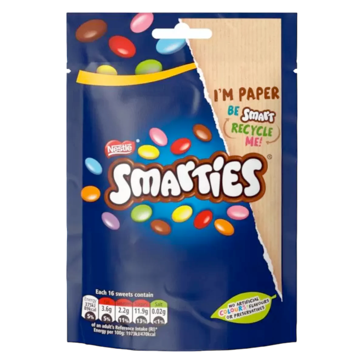 Smarties are yummy, smooth milk chocolate sweets covered in crisp, colorful sugar shells in red, yellow, green, blue, violet, pink, brown, and orange. Which color is your favorite?
