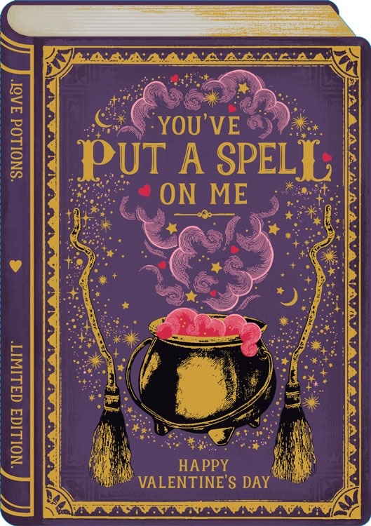 Celebrate a magical relationship with the Spell Storybook Valentine's Day card. This card is die-cut and features embossing and gold foil. Printed on 280GSM textured board, it comes with an ivory envelope, and is sustainably sourced and recyclable. It is blank inside for a personal message.