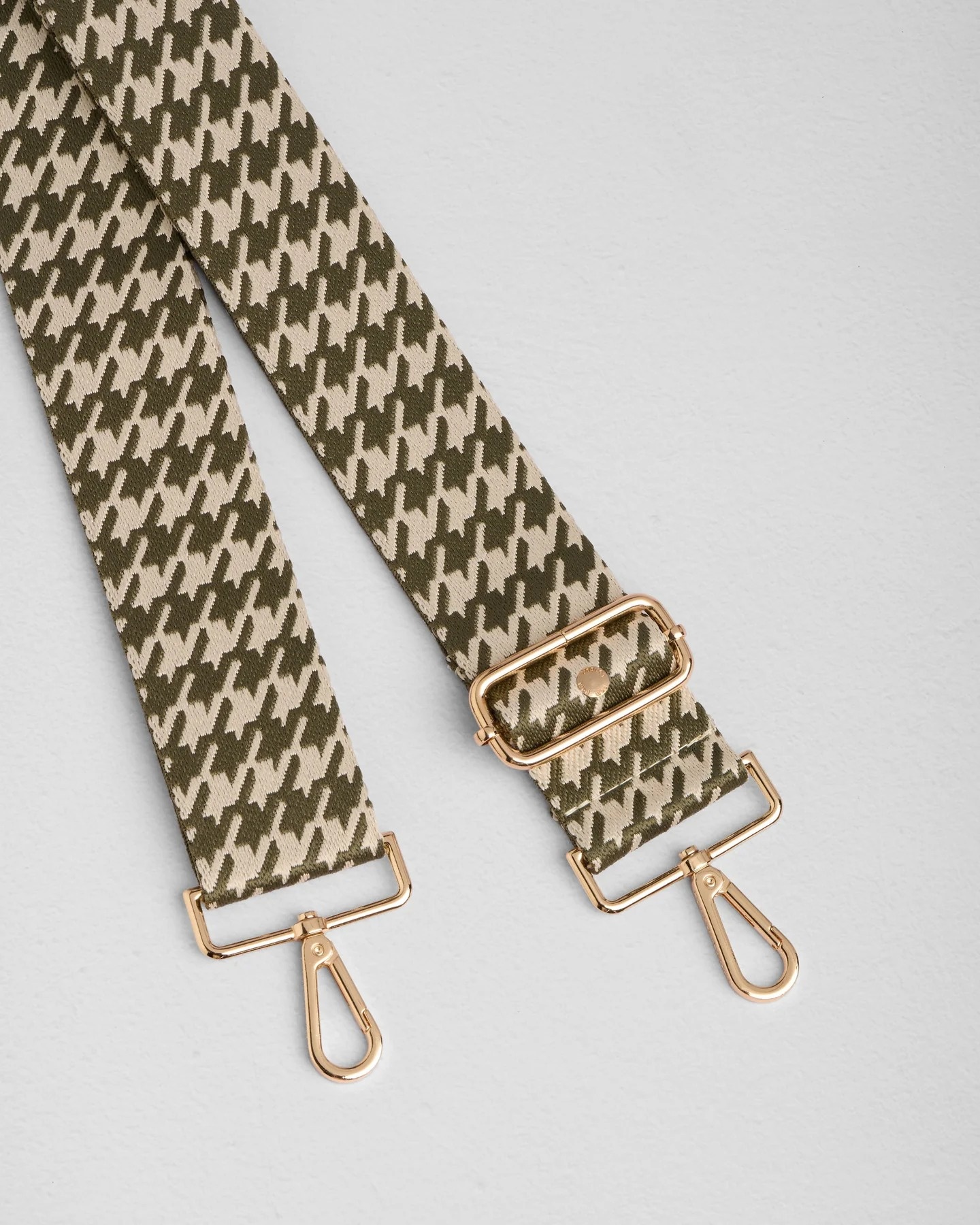Personalize your bag and make it uniquely yours by simply changing its strap to this Pom Pom London Sage Green Houndstooth Strap. It is made for Pom Pom London bags but can be used on any handbag with detachable straps. The strap's golden hardware adds flair to every occasion, from day to night. Its customizable length can be as short as 31" and extends to 57", making it the ideal length for everyone.