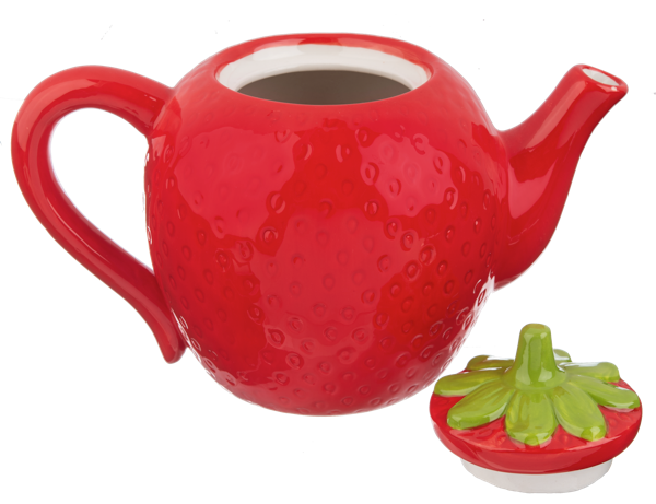 This figural teapot from Ganz is in the shape and color of a red ripe strawberry.