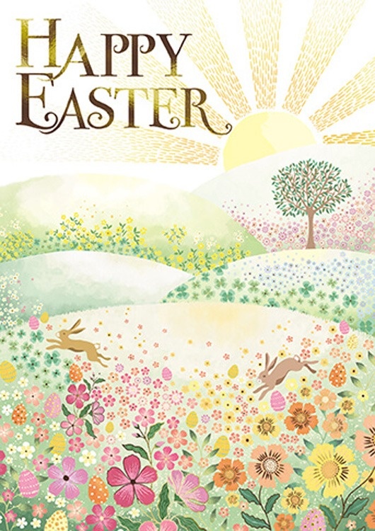 This Easter card is accented with gold foil for an extra-special touch. Inside, it reads, "Sending you springtime wishes for a very happy Easter!"