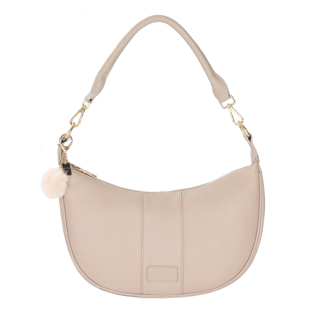 The Stone Sutton Sling Bag's crescent-shaped design with curved lines gives it a contemporary feel. It is spacious enough to carry your everyday essentials, plus room for those extra bits, and can be worn over the shoulder or across the body. Its detachable strap allows you to mix it up by using other Pom Pom London straps. Designed in the UK.