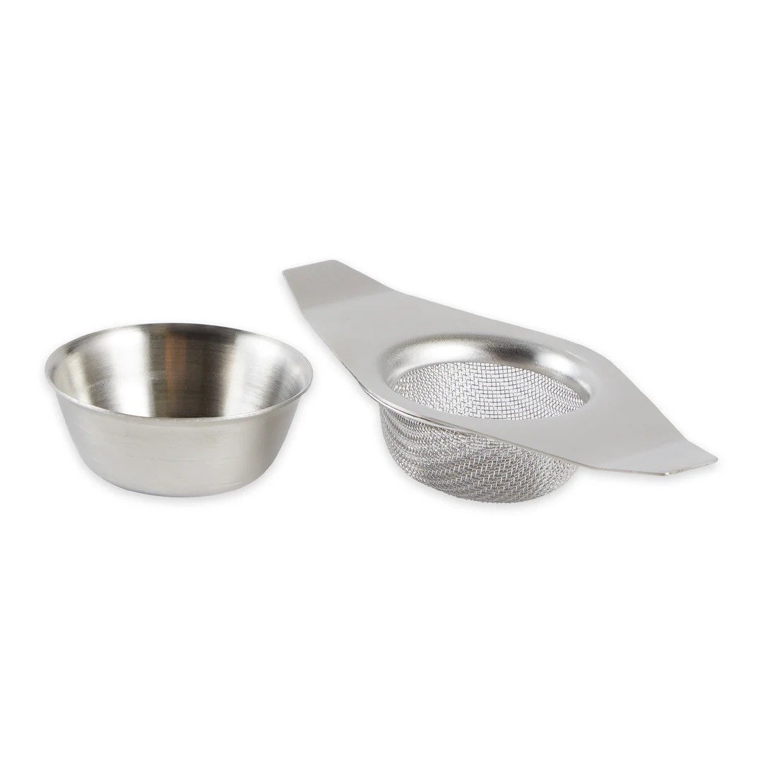 This tea strainer and its coordinating drip cup are made of brushed stainless steel with metal mesh for long-lasting use. Place the strainer over a cup or mug, then pour freshly steeped tea through and let the fine mesh catch all the leaves. The drip cup is the perfect place to rest the strainer while you enjoy your tea. Dishwasher safe on the top rack.