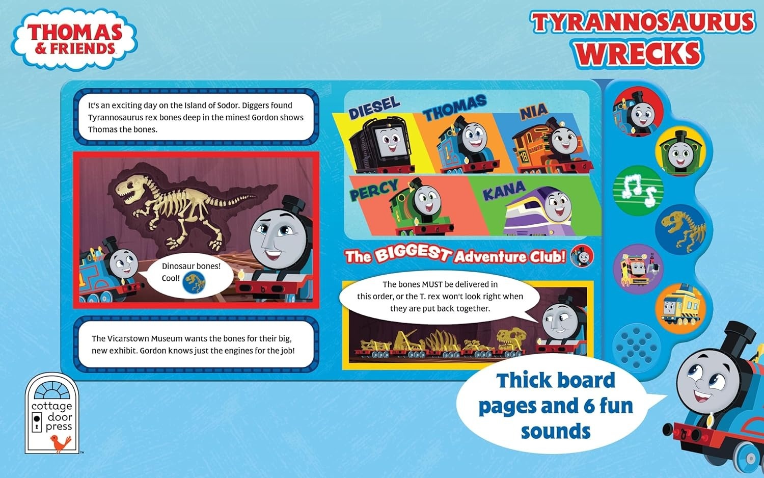 Diggers discover T. rex bones on Sodor, and Gordon tells Thomas the bones must be delivered to the museum in just the right order. Thomas and his friends get mixed up: but don't worry, everything gets sorted in the end. Sing the T. rex song and hear Thomas and other best-loved characters from the hit animated show. Preschool children love Thomas the Tank Engine and will love to be engaged by the sounds, songs, and story. Great for kids just discovering the stories, and perfect for Thomas super-fans.