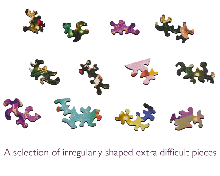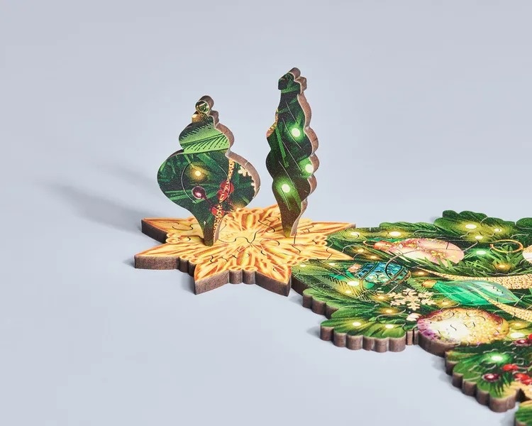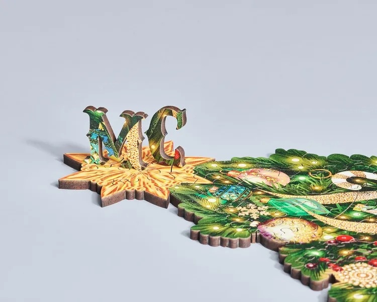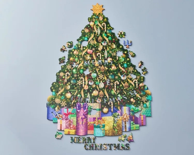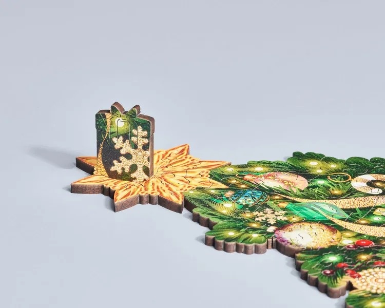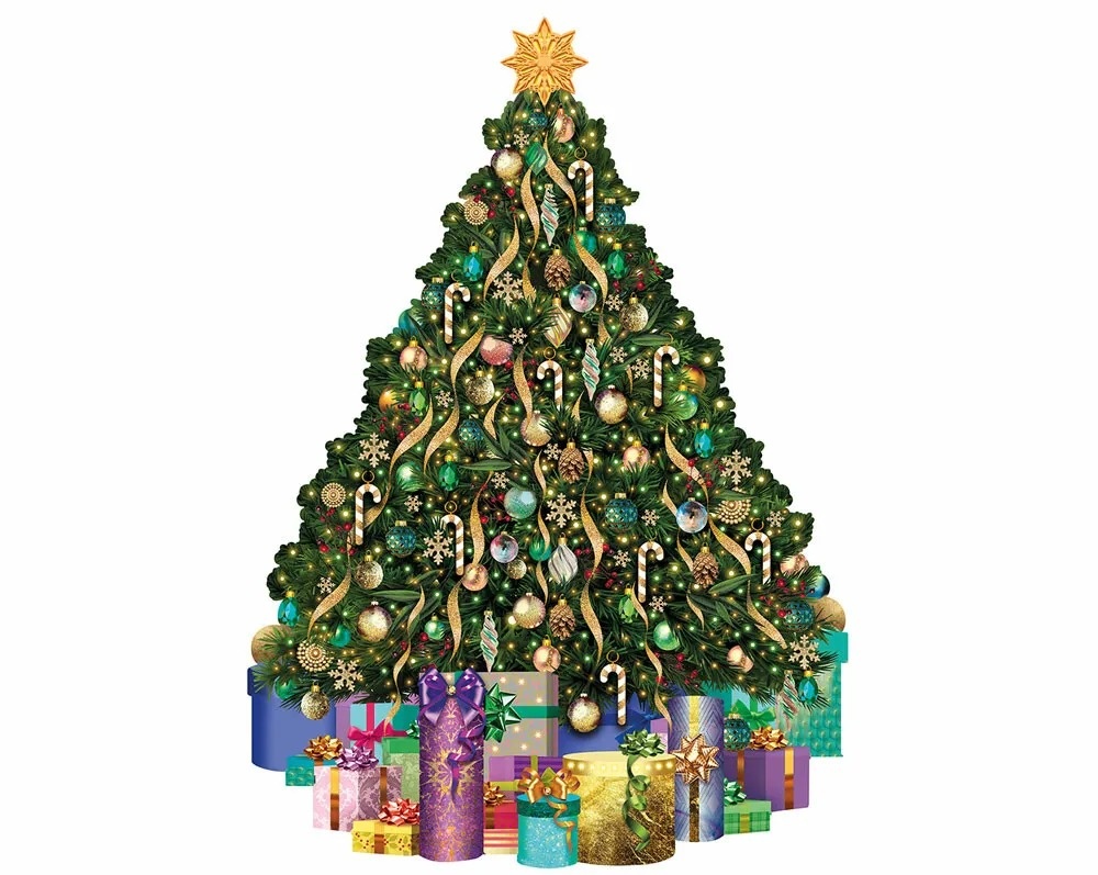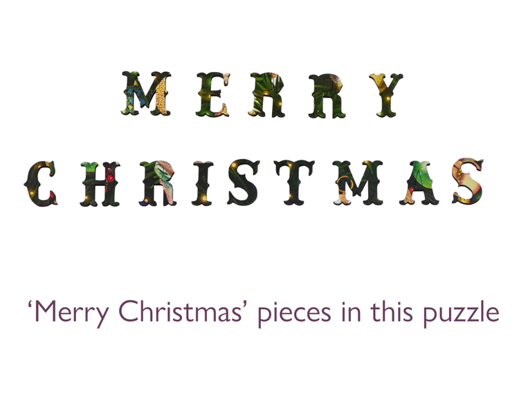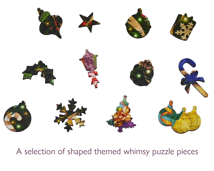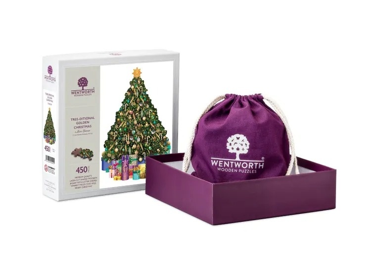 This extra large shaped puzzle was exclusively designed for Wentworth Puzzles by Lara Skinner. The ornate puzzle combines extra difficult cut details, themed whimsies and 'Merry Christmas' pieces. Now you can bring home a luxury Christmas tree with a festive edge.