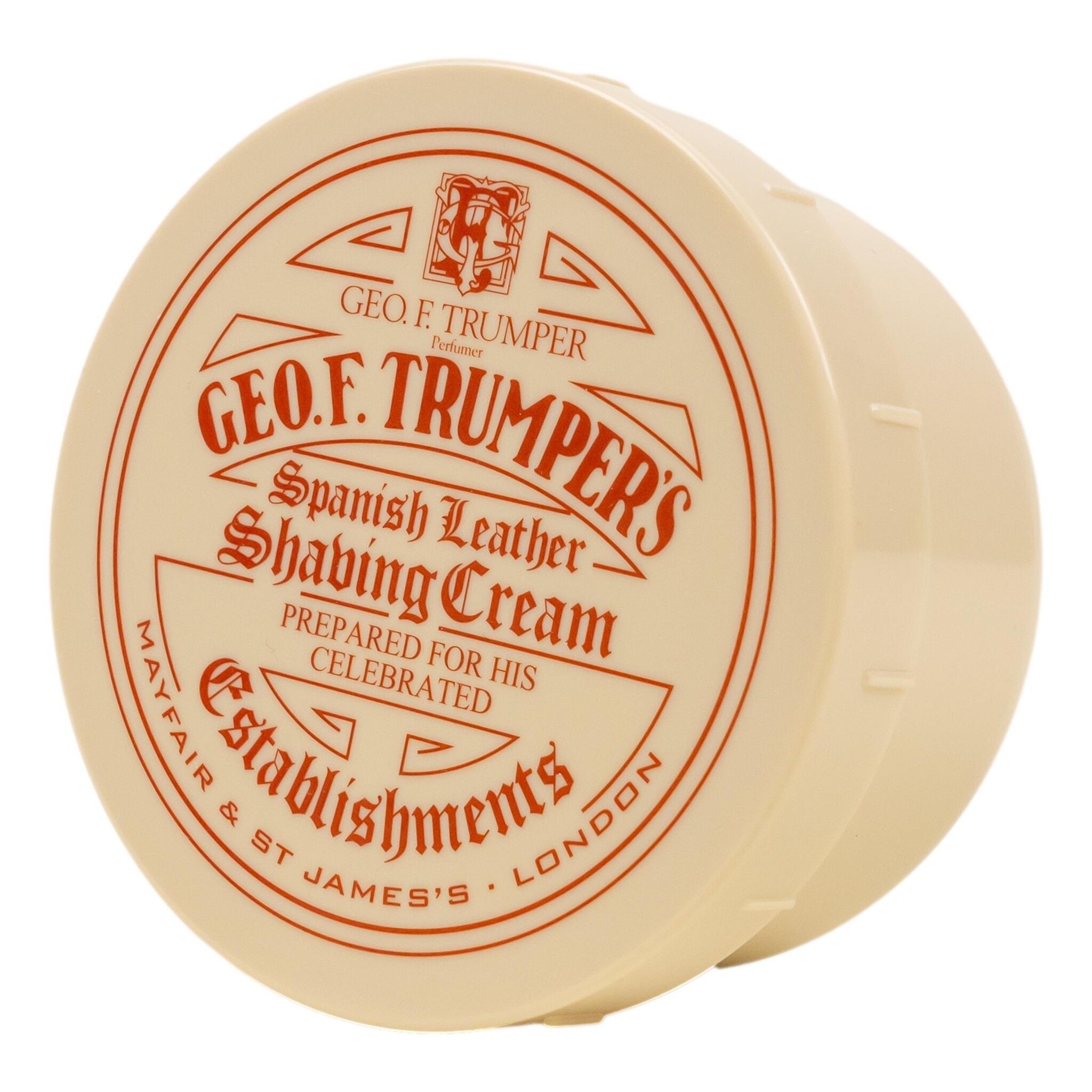 Geo. F. Trumper Spanish Leather Shaving Cream is a glycerine-based, soft shaving cream that produces a rich, dense lather for a comfortable shave, leaving skin smooth and fragrant. It features a classic, warm barbershop scent with leathery notes and hints of musk, patchouli, geranium, and rose, similar to Imperial Leather. A small amount of cream, when whipped with a shaving brush, creates a vast amount of rich, cushioning lather.