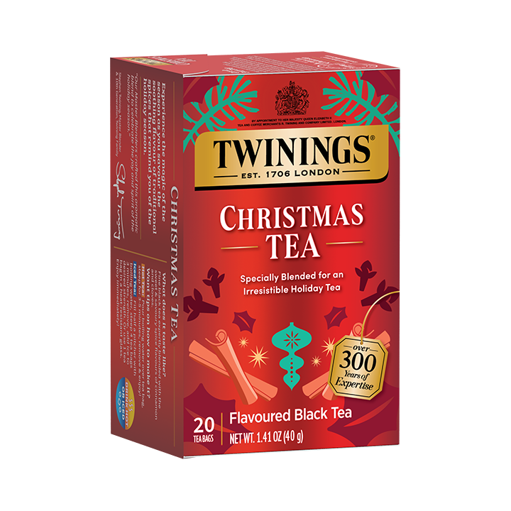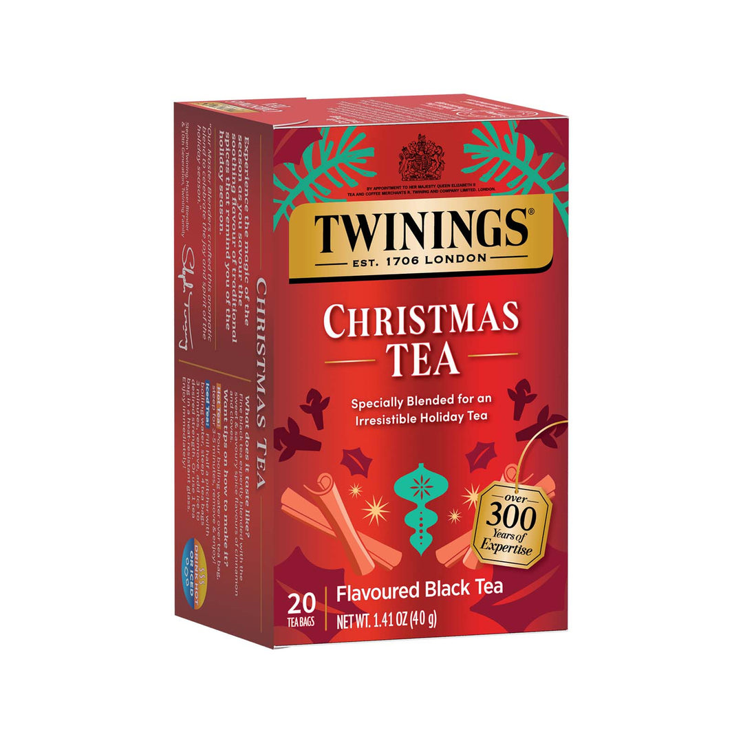 Create a merry moment with this limited-edition winter tea. Twinings Christmas Tea is expertly blended with the savory flavors of cinnamon and clove. This fine black tea will surely bring you holiday cheer with its warm, spicy taste and soothing aroma.
