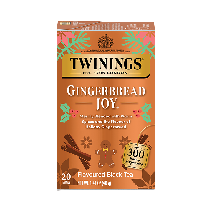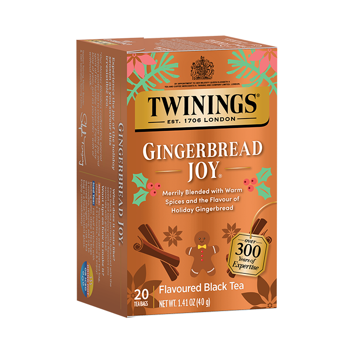 This special edition winter tea from Twinings celebrates the joy and spirit of the holiday season. Gingerbread Joy is a decadent blend of the finest black teas and the sweet and savory spice flavors of ginger and cinnamon. Whether entertaining guests or simply taking a moment for yourself to pause, relax, and recharge, Twinings Gingerbread Joy is a jolly way to make this holiday season memorable.