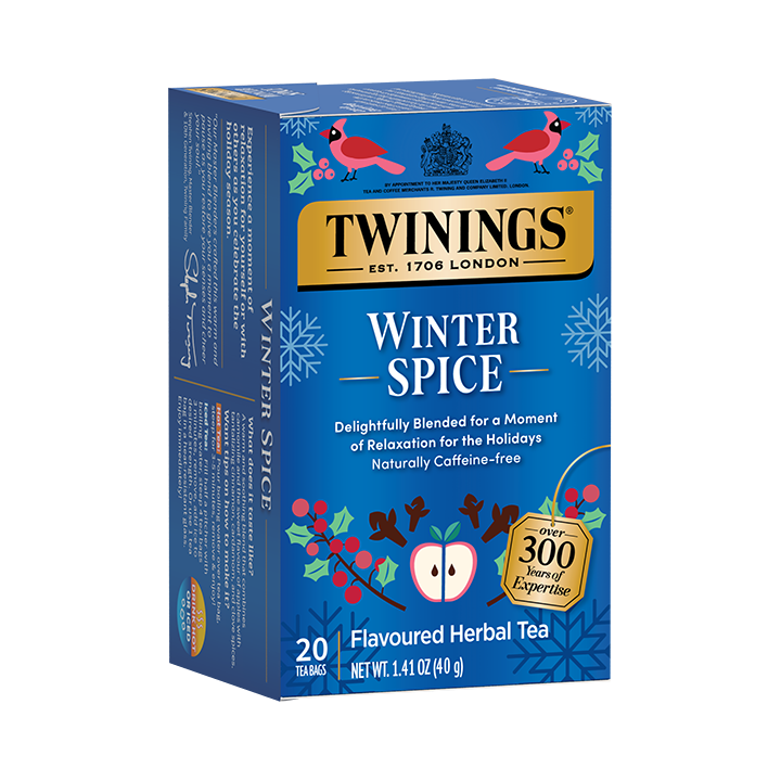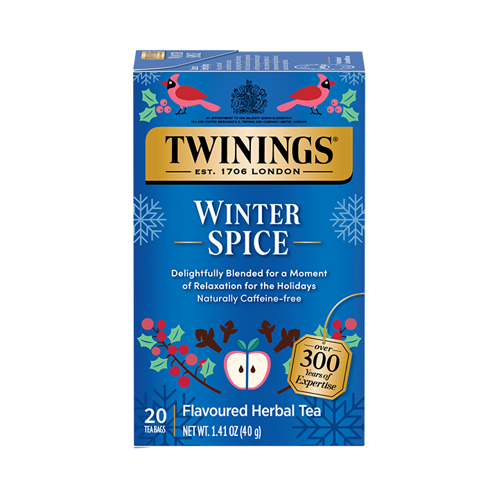 Twinings Winter Spice is a warm and inviting blend that combines soothing apple flavor and chamomile with tantalizing cinnamon, cardamom, and clove spices. Whether entertaining guests or simply taking a moment to pause, relax, and recharge, Twinings Winter Spice is the perfect way to restore the senses and cheer the soul.