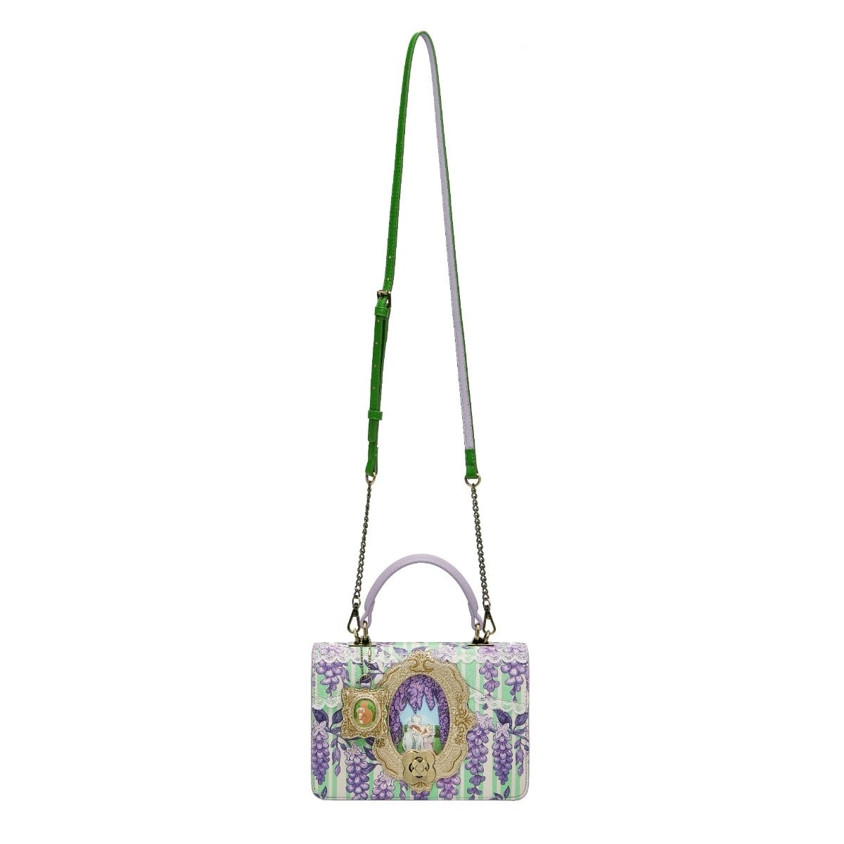 Light enough for a leisurely promenade yet lovely enough to charm nobility, the Vendula Heritage Regency Garden Cassie Bag is romance in miniature. This vegan leather bag is perfectly sized to carry your daily essentials or your favorite historical romance novel. The top handle and detachable strap allow you to carry it your way. Base studs keep it stable and clean wherever you place it.