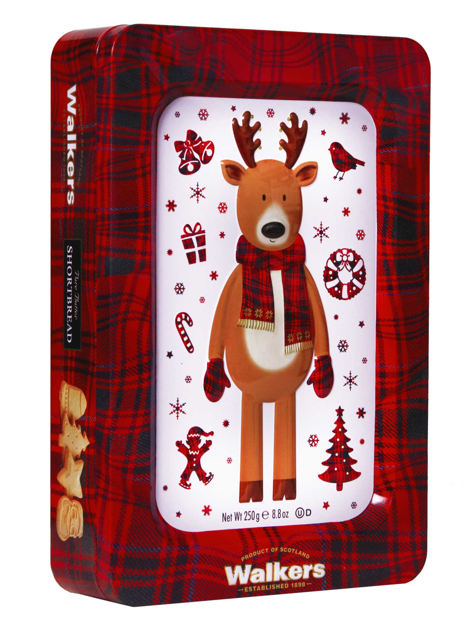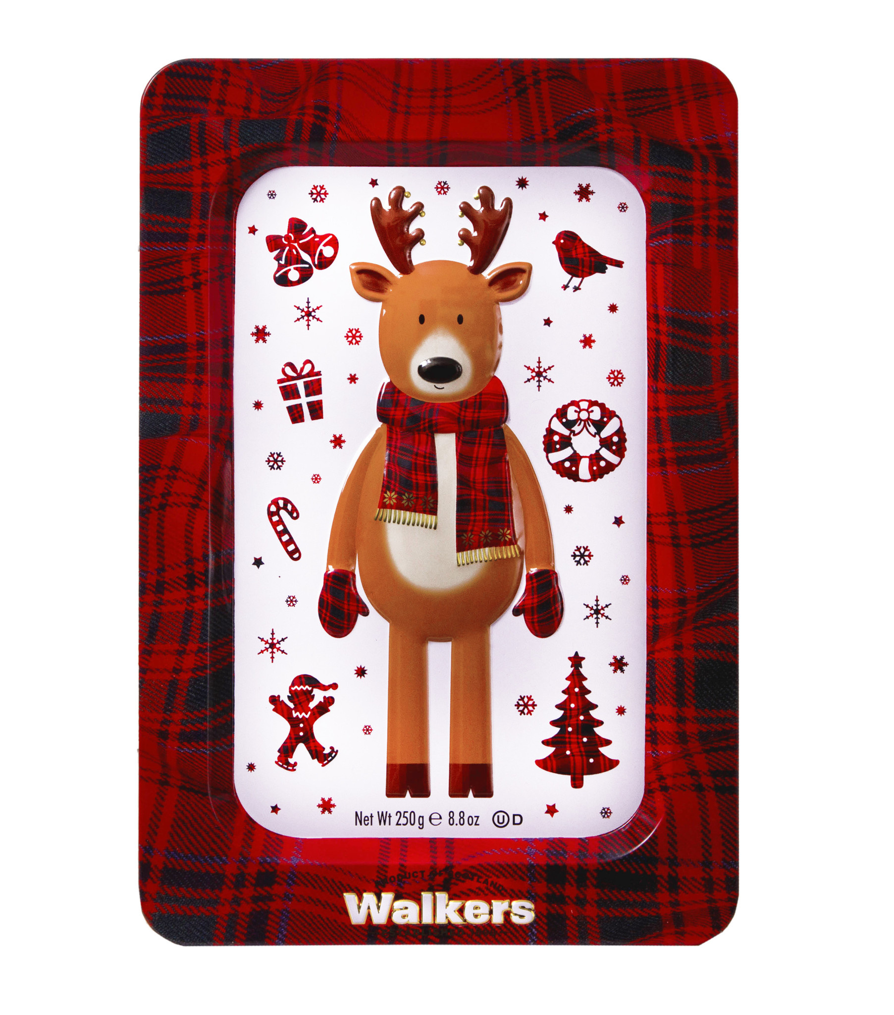 This nostalgic tartan festive Reindeer tin is a wonderful addition to Walker's holiday tin assortment and makes the perfect gift. This tin contains the iconic Festive Shape Shortbread which includes Christmas Trees, Santa, Stars and a Bell.