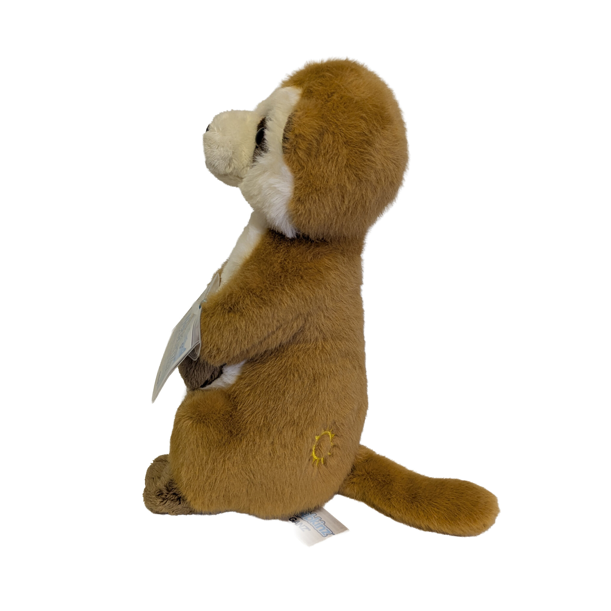 The Webkinz meerkat has an alert upright posture and an embroidered sun on the flank. It comes with two adoption codes, one for Webkinz Next and one for Webkinz Classic. Surface washable.