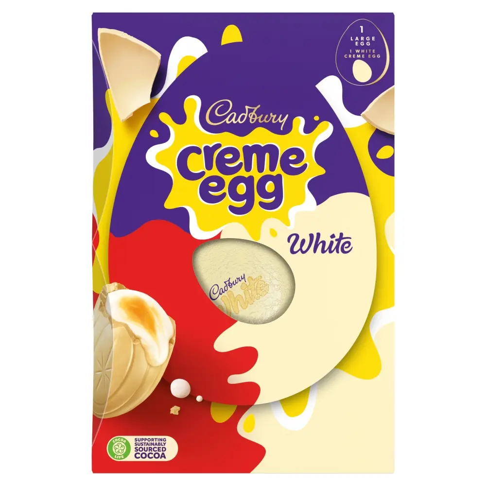Get ready for Easter with Cadbury's White Creme Egg Easter Egg: a delicious hollow white chocolate egg with with a gooey Cadbury White Creme Egg.