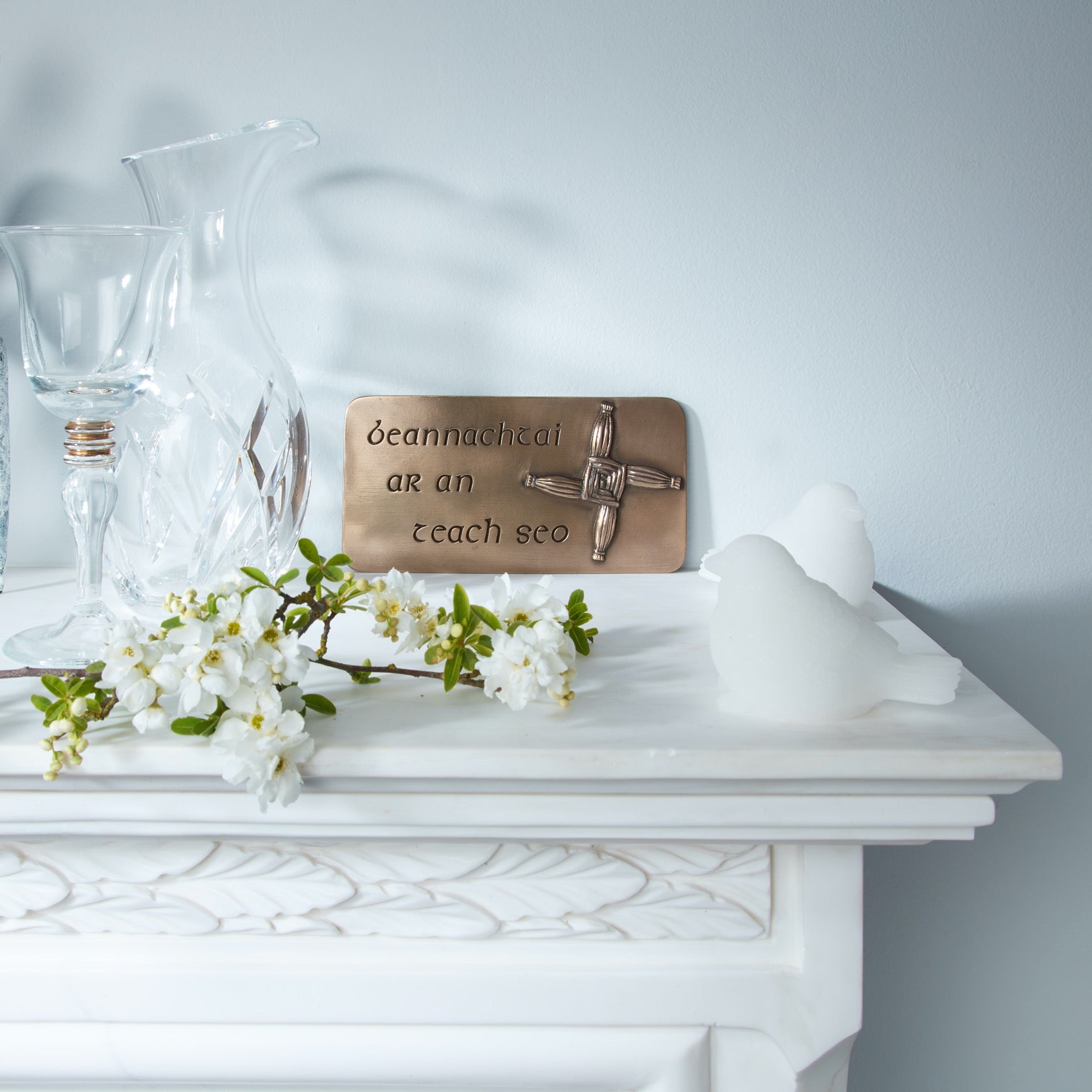 Usually woven from reeds, the St Brigid’s Cross is thought to protect the home. This wall hanging comes with the Irish phrase: blessings on this house. Many folk traditions are associated with St Brigid, which are still celebrated in rural Ireland.