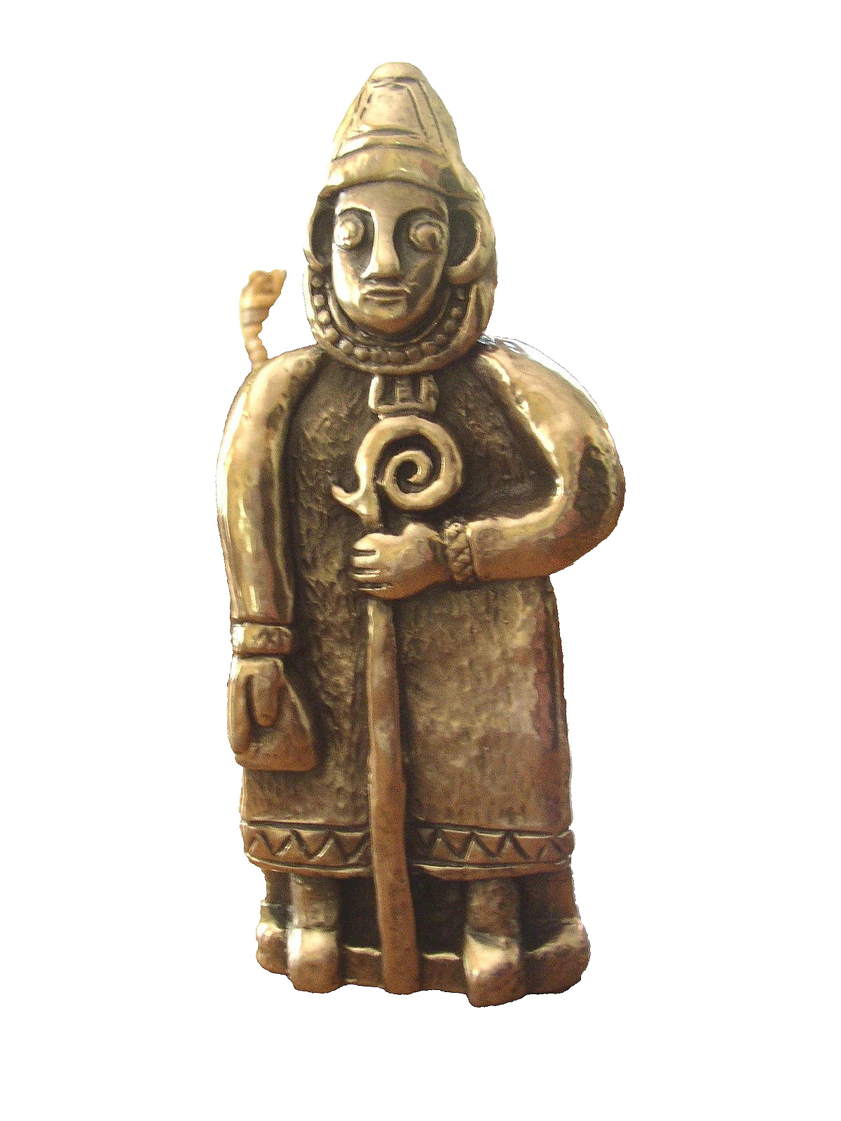 This Wild Goose Studio carving of the statue of St. Patrick is based on a cross at Kilfenora in County Clare. This standing three-sided dimensional piece would make a lovely addition to a shelf, desk, or table.
