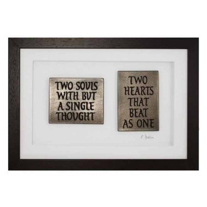 Two souls with but a single thought, Two hearts that beat as one. This romantic couplet comes from the writings of the great 19th-century Austrian playwright and poet Friedrich Halm. Original lettering by Edward Kelly commissioned exclusively by Wild Goose and carved by Adam Grabski.