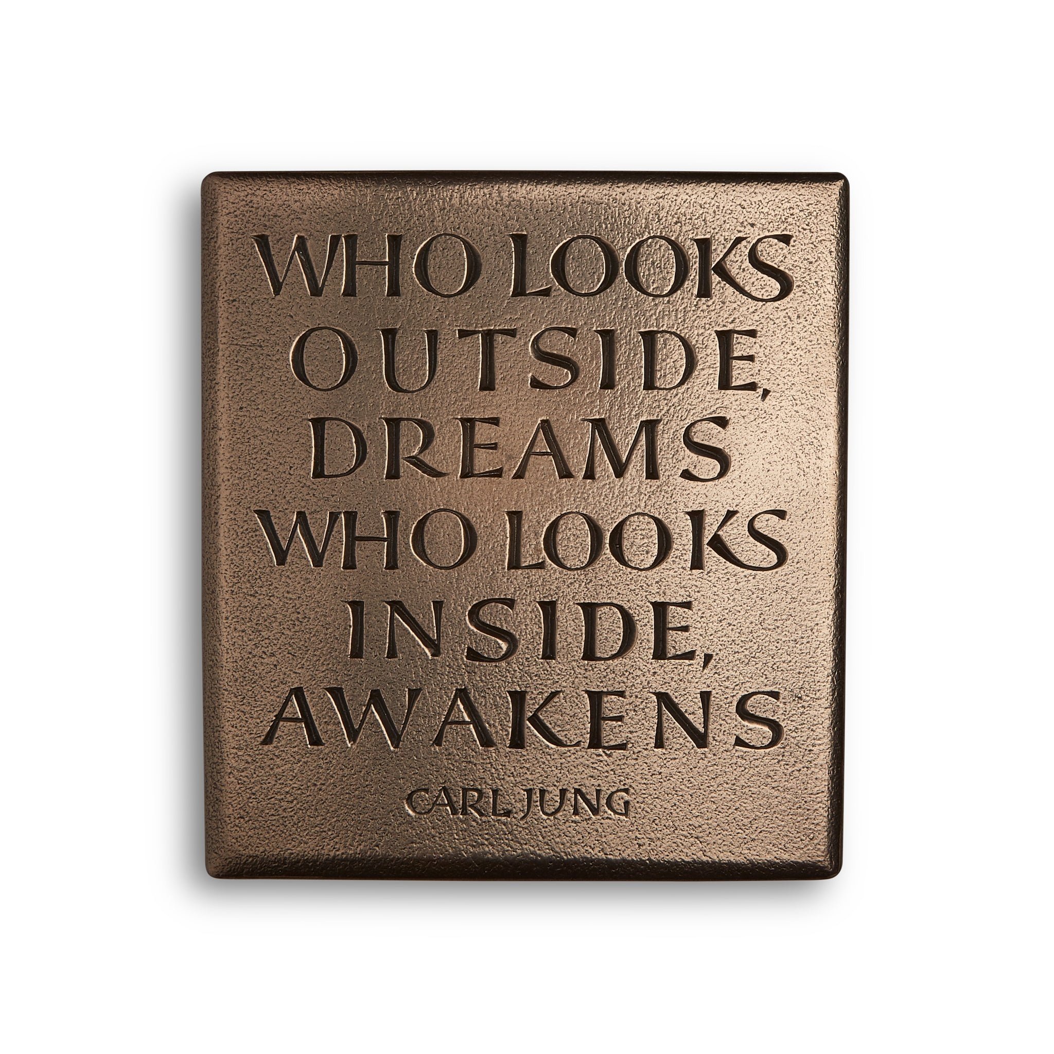 An original design carved by Tom Little, this quote from the great Swiss psychotherapist Carl Jung reflects his interest in meditation and Zen Buddhism. It is preceded by the words: Your vision will become clear only when you look into your heart. This piece comes in a presentation gift box.