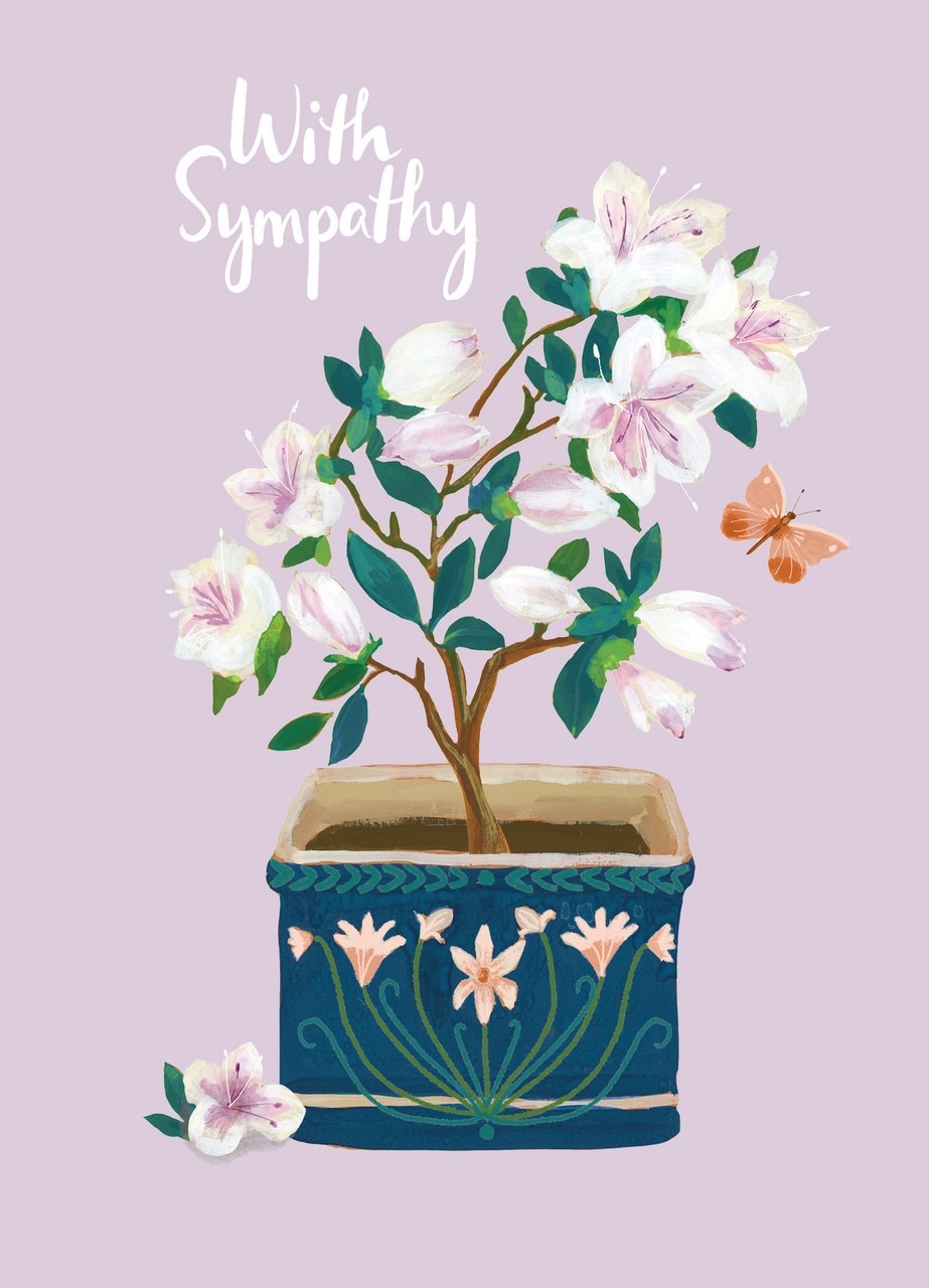 This card features a flowerpot in muted colors and a message of sympathy. It is blank inside for a personal message.